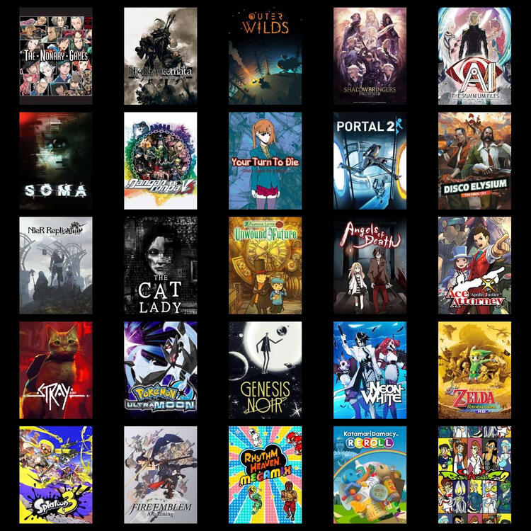 zero escape, aitsf, nier, FFXIV, pokemon, splatoonmy top 25 games: